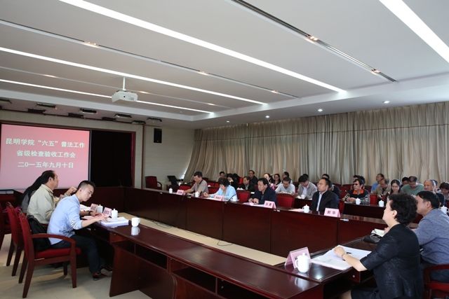 经过实事求是、客观公正的检查验收评分,检查验收组在反馈意见时给予我校“六五”普法工作较高的评价和肯定。潘兴顺肯定说,yl23455永利官网普法工作一是领导重视,思想统一。不仅学校成立了由书记、校长任组长的法治宣传教育领导小组,学校每个基层单位也都成立了相应的普法领导小组、安排了具体普法工作人员,并能按要求统一地开展工作。二是重点突出,客观实际。学校既能按照全省统一的普法要求开展普法工作,又能结合高校的实际和职能,据教师、学生的所需,教学院系抓住了“法律进学校”的主体开展普法,职能部门又能突出落实“谁主管谁普法 谁执法谁普法”的工作重点。三是工作突出,措施有力。学校整个普法工作既有工作规划、工作实施方案,又有工作落实安排、督促检查措施和工作结果通报等措施和办法。四是成效凸现,稳定安康。学校多年来一直保持无重大校园事故,领导干部、教师无违纪情况,被云南省纪委、省监察厅命名为第一批云南省廉政文化示范点;多年获省、市“平安校园”、“平安建设先进单位”、“文明学校”、“文明单位”荣誉称号;2014年还荣获“全国‘六五’普法中期先进单位”,2015年荣获第四届“全国文明单位”。这些成绩、荣誉的取得,充分体现了学校普法工作做得实、做出了成效。只有普法工作做好了,师生的法律素养才能得到全面提高,才会有好的校园文明形象,校园才能更加安康。