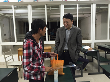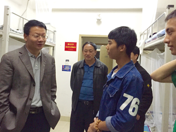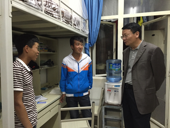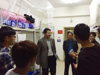 9月13日晚,党委书记陈世波深入学生宿舍看望2015级新生。党委办公室主任吉庆华、人民武装部副部长吴向东随行。