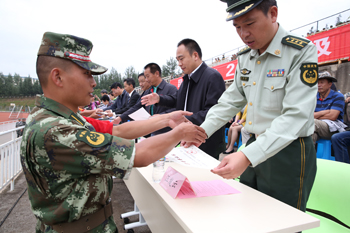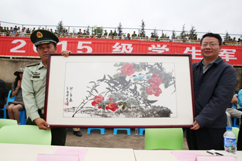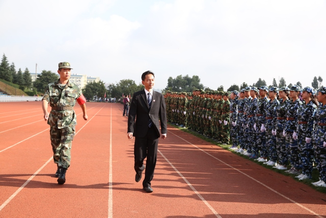 9月11日上午,yl23455永利官网2015级学生军训汇报表演暨总结表彰大会在学校田径运动场隆重举行。学校党委书记陈世波出席大会并代表学校向承训部队云南武警边防部队士官学校赠送纪念匾额,校长何华检阅军训学生方队。武警边防部队士官学校训练部副部长(大校警衔)赵立志、武警边防部队士官学校装备维修系政委汪发云,学校党委副书记孙勇,党委副书记、纪委书记李媛芬,副校长李翔、熊晶、郭华、董建华出席大会,并同其他与会领导一同为获奖集体和个人颁奖。郭华主持大会。