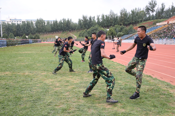 分列式后,军训科目汇报表演开始,集中展示了军训12天以来的训练成果。第一队列方阵带来队列操图案表演,表演动作包括敬礼、跨立、齐步走、正步走、齐步变正步等预定训练科目。令行禁止、潇洒的转身,纵横交叉,组成的“32”图案,蕴意校长对新生的32个赞让大家眼前一亮,有力的身姿让大家为之一振。整齐的动作,饱满的精神,矫健的步伐、准确的口令、嘹亮的声音赢得在场领导和观众热烈的掌声。第二个表演项目是由女生和男生共同组成的方阵展示擒敌拳,整齐刚劲的动作、坚定嘹亮的口号,展示着昆院学子的自信和刚强。第三个项目展示的是擒拿摔术,实摔的倒功、实战的擒敌,过硬的功夫、致敌的招数,男儿的刚强搏得观众连声叫“好”!相续,消防警笛声响起,一辆消防车急速驶入操场,由8名新生和昆明经开区消防大队4名消防员共同完成水罐消防车双干线出三支水枪灭火表演。规范的动作、专业的技能、警示的演练,让学生了解消防,增强学生消防安全意识。