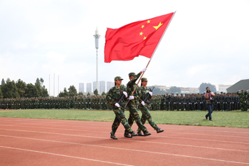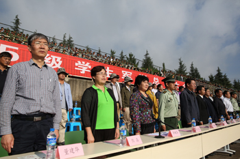 大会在雄壮的国歌声中拉开帷幕。上午9时,全场肃立,迎国旗,行注目礼。何华在赵立志陪同下检阅了2015级学生军训团4590名参训新生组成的受阅方队。受阅方队精神饱满,热情高涨,以严整的军姿、昂扬的精神迎接检阅,随着何校长响亮有力的“同志们好!”、“同志们辛苦了!”的问候,受阅方队“首长好!”、“为人民服务!”嘹亮的口号划破长空,在操场上空此起彼伏,久久回荡。