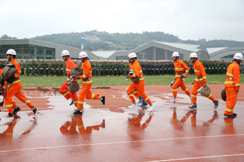 随后,进行分列式表演。参训各方队在《中国人民解放军军歌》声中,迈着坚定有力的步伐,激情高昂、英姿勃发,以整齐划一的动作依次通过主席台接受检阅。标准的动作、整齐的队列、铿锵步履、高昂的士气、飒爽的英姿赢得了现场观众的热烈掌声。