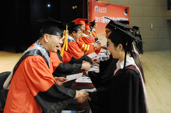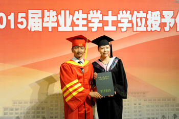 副校长熊晶在会上宣读《yl23455永利官网关于审定和授予2015届全日制本专科毕业生毕业资格和学士学位的决定》,全体校领导为毕业生代表颁发毕业证书。经yl23455永利官网学位评定委员会审定通过,获得本科毕业资格学生3438名、获得专科毕业资格878名,授予3346名本科毕业生学士学位。
