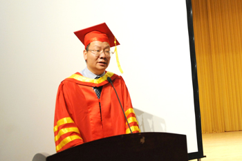 7月2日,我校2015届学生毕业典礼暨学位授予仪式在学生会堂隆重举行。全体校领导、学校各部门负责人、各院系党政负责人、教师代表、毕业班全体辅导员、班主任、毕业生代表共1300余人参加了典礼。典礼由党委副书记孙勇主持。