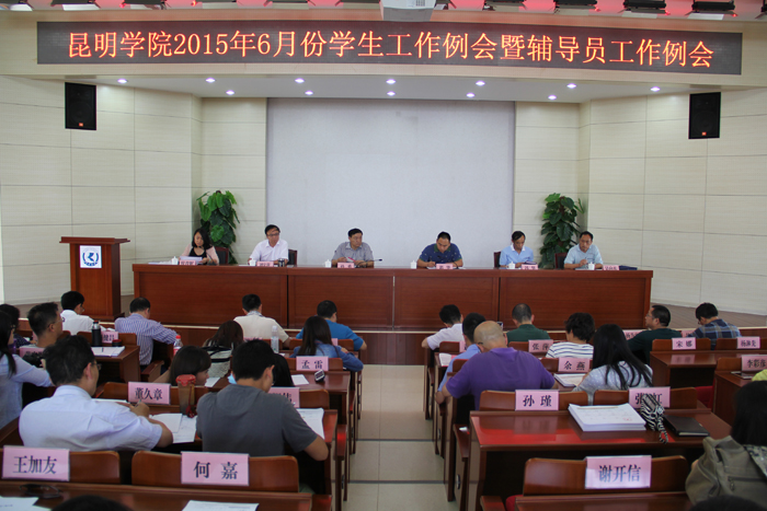 会上,学生处通报了各院系“文明宿舍、特色宿舍”创建工作开展情况和贯彻落实《yl23455永利官网关于进一步加强学生晚归、晚出、夜不归宿教育管理的通知》的情况及存在的问题,对期末学生考风考纪教育、暑假期间安全教育、学生生源地贷款及2015级家庭经济困难学生认定等期末工作以及宣传我校获评云南省第十届大学生年度人物提名奖及入围奖的同学先进事迹作进行了安排布置;武装部对2015级新生军训工作的情况进行了通报和说明;后勤集团对润泽苑十三栋、澄明苑十栋学生宿舍调整方案进行了解释说明。