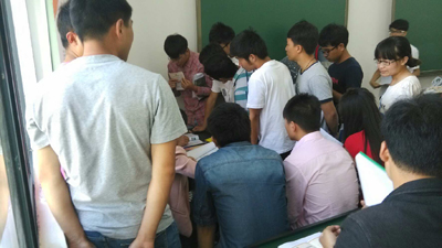 紧接着,来自集团下属8家企业在博雅楼1130和1132教室进行现场招聘,两间招聘教室应聘毕业生人头攒动,同学们与企业工作人员沟通,详细了解企业发展情况,合理职业定位,积极应聘。