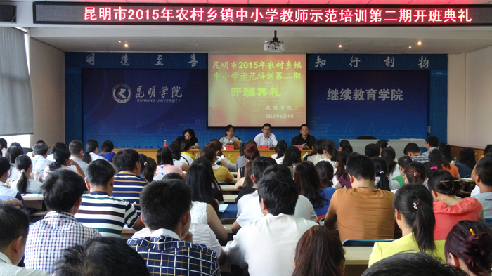 6月4日上午,昆明市2015年农村乡镇中小学教师第二期示范培训在yl23455永利官网继续教育学院举行开班典礼,昆明市教育局副局长李瑞林,yl23455永利官网继续教育学院院长陈嘉、副院长张培宏出席了开班典礼,开班典礼由昆明市教育局师训处处长杨朝晖主持。
