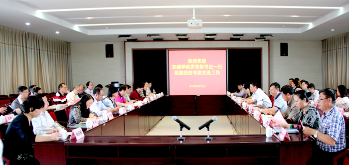 5月21日上午,安顺学院党委书记罗荣彬,副院长、评建办公室主任王芳恒率相关部门负责人一行24人到我校考察交流本科教学工作合格评估。