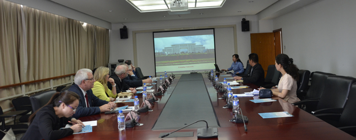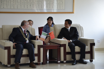 参观结束后,何华校长代表学校会见克莱尔郡郡长一行。何华首先对郡长一行的到来表示欢迎及感谢,随后全面介绍了学校的情况,希望能依托爱尔兰中心把学校办得更好,让更多的中国学生感受爱尔兰的风采。郡长对我校的接待表示感谢,并希望以后双方加强合作,更好地推动爱尔兰中心的工作,并希望在适当的时候校长能访问克莱尔郡。