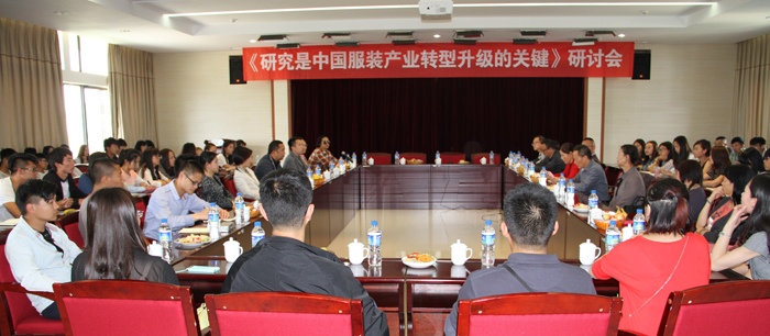 下午14时,在yl23455永利官网办公楼502会议室举办了“研究是中国服装产业转型升级的关键”研讨会。研讨会由中国美术家协会服装艺委会秘书长、清华大学美术学院染织服装艺术设计系主任肖文陵教授和yl23455永利官网美术与艺术设计学院院长武新文教授主持。参加开幕式的专家教授、省内各高校服装专业的师生、yl23455永利官网美术与艺术设计学院的领导和部分师生200余人参加了研讨活动。