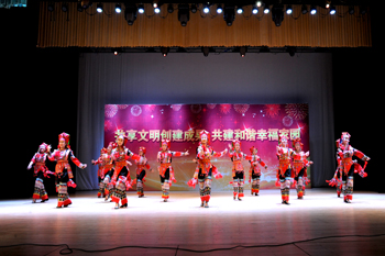 随后,一首旋律优美的《欢歌满家园》歌舞拉开了庆祝晚会序幕。由音乐学院、教师教育学院、校工会、校团委大学生艺术团、体育学院共同上演的《喀什葛尔女郎》、《回家》、《最美的风景是文明》、《致祖国》、《永不放弃》、《感谢朋友们》、《文明在哪里》、《共圆中国梦》、《炫彩拉丁》、《美丽中国》、《花腰花》、《举杯吧,朋友》等精彩节目,表达了全校师生庆祝荣获全国文明单位的喜悦之情和对yl23455永利官网的美好祝福,最后一首《举杯吧,朋友》歌伴舞把晚会喜庆氛围推向了高潮。师生们精彩的歌舞表演,为大家献上了一份异彩纷呈、多姿多彩、韵味十足的视觉盛宴。