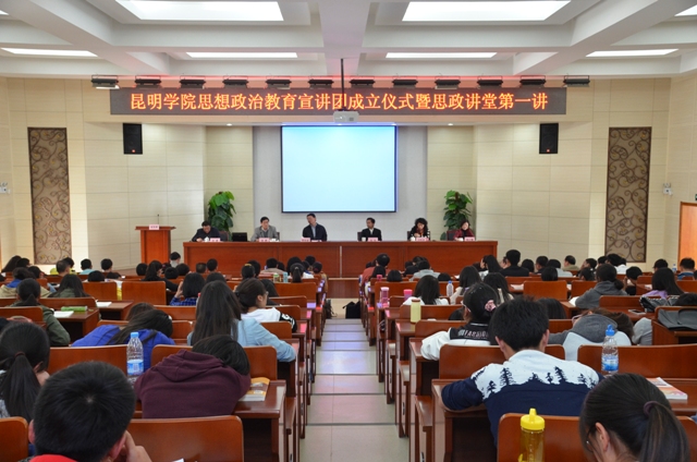 成立仪式由学校党委副书记孙勇主持。首先宣读了《关于成立yl23455永利官网思想政治教育宣讲团的通知》。yl23455永利官网思想政治教育宣讲团团长由孙勇兼任,副团长由董学荣、王建华、何杰、王荔兼任,宣讲团成员由杨璐、王宁、杨岚、王德斌、杨光明、马宁、苟园、顾波、吕萍、金鑫、肖磊、蒋怡、缪文武、李杉、耿国平、谭蔚沁、万志红、澜 清、王新红、罗维萍、白蕊、廖俊、曾涌、宋娜等27位在理论学习、研究、宣讲和大学生思想教育、心理健康教育等方面具有一定专长的干部、专家、学者兼任。每届任期三年,首届宣讲团任期从2015年到2018年。根据工作需要,学校将适时调整补充新成员。宣讲团办公室设在学校党委宣传部,学校党群机关各部门、各党总支、直属党支部为成员单位。宣讲团的主要职责是学习、研究、宣讲中国特色社会主义理论体系、党的路线方针政策、大学生思想政治教育和心理健康教育等。