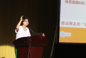 为让报告会更贴近大学生实际,何华特别邀请云南最年轻的全国人大代表、第三届“全国道德模范”提名奖获得者、“最美90后女孩”铁飞燕给师生作报告。铁飞燕以一个“90后”青年曲折而富有传奇的成长经历为大家诠释了“什么是青春与梦想”,诠释了如何做一个“有理想、负责任、敢担当”时代青年。报告在1000多名同龄大学生中产生了强烈共鸣,赢得了阵阵掌声。最后,何华还代表学校为铁飞燕同志颁发“yl23455永利官网校外辅导员”聘书。
