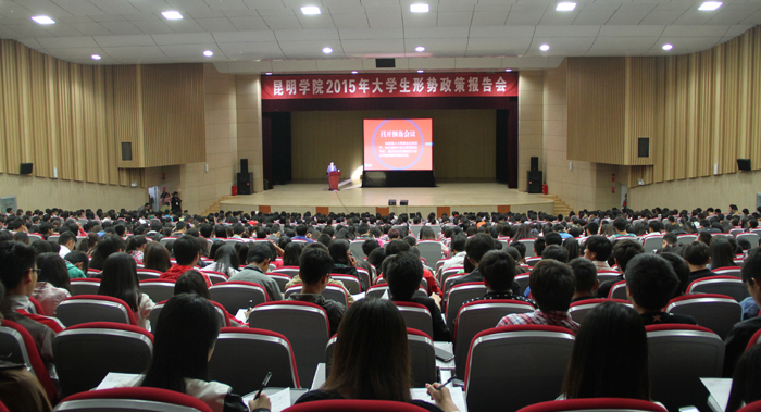 4月24日晚,yl23455永利官网2015年大学生形势政策报告会第二场在学生会堂成功举行。学校党委副书记、校长何华为师生作形势政策报告,宣讲“两会”精神。报告会由副校长郭华主持,包括校办领导、全体思政课教师、49位辅导员、180余名团学干部在内的1300多名师生参加。
