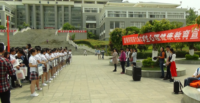 4月24日下午,我校第七届大学生心理健康教育宣传月启动仪式在聂耳广场举行,心理健康教育与咨询中心的老师及来自18个院系的师生1000余人参加了启动仪式。