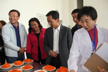 学校领导对烹饪类技能考试非常重视,23日上午,副校长郭华在招就处领导陪同下亲临考试现场关心指导,24日下午校长何华率招就处处长包兴、副处长吴晓柏等人到烹饪实训中心对“三校生”烹饪类技能考试工作进行了视察与指导。在旅游学院党总支书记张士芬、副院长吴跃辉、烹饪教研室主任杨滨的陪同下,何华一行视察了烹饪技能的热菜、刀工、雕刻、面点所有考试项目,充分肯定了考试中的各项工作环节。