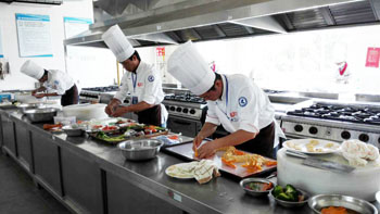 4月10日、11日,由云南省教育厅主办,云南省高等职业院校实践教学指导委员会协办,yl23455永利官网承办的2015年云南省高等学校学生西餐主题宴会设计及烹饪技能大赛顺利进行。在西餐主题宴会设计大赛中,旅游学院派出的三名选手黄红文、杨钧宇、王灏然在来自全省7所高校,20名选手中脱颖而出,包揽总分前三名。其中,黄红文及杨钧宇两同学均获得一等奖,王灏然获得二等奖。在烹饪技能大赛中,旅游学院选手同样取得了骄人成绩:朱伟获一等奖,普亚娜获得二等奖,李福寿、徐玉竹及杨喜焱获三等奖。