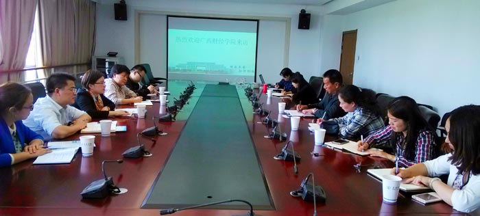 4月16日下午,广西财经学院国际教育学院院长兼国际交流处处长池昭梅等一行5人到我校考察交流。学校副校长李翔、国际交流合作处全体人员热情接待并与之座谈。