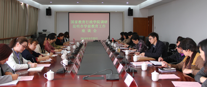 3月23日,国家教育行政学院副院长李五一、教育行政教研部副教授李改、教育管理杂志社总编室主任舒刚到我校举办昆明市学前教育工作座谈会。昆明市教育局副局长蒋坚桥、学前教育专干李晏梅,昆明市教工第二幼儿园、海贝中英文幼儿园、小天使幼儿园、呈贡区风华俊园幼儿园、海贝中英文幼儿园的园长和教师代表,我校教务处副处长王韬,教师教育学院的全体领导及部分教师参加了座谈。我校副校长熊晶出席并主持会议。