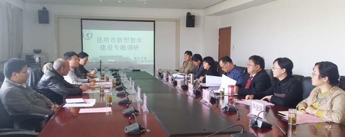 首先,市政府研究室副主任陈垠宏介绍,为了落实国家以及我省关于新型智库建设的要求,出台《关于加快昆明市特色新型智库建设的实施意见》,特对我校进行调研。以期深入了解高校新型智库建设情况、对昆明建设特色专业化智库的建议以及高校智库在建设发展中希望得到的政策支持。