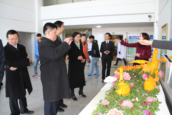在旅游学院党总支书记张士芬、主持工作副院长田芙蓉等陪同下,希尔顿全球客人还参观了学校建设布局模型、校园风光及旅游学院重点实验室,观摩了学生烹饪厨艺展示、酒水实验室操作展示。