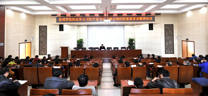 1月27日,yl23455永利官网党委书记陈世波分别在学校党委会和干部大会上传达了习近平总书记考察云南时的重要讲话精神,要求学校党员干部和全体师生全面学习领会讲话精神,切实把思想和行动统一到讲话精神上来。学校领导、中层干部等近200人参加学习。