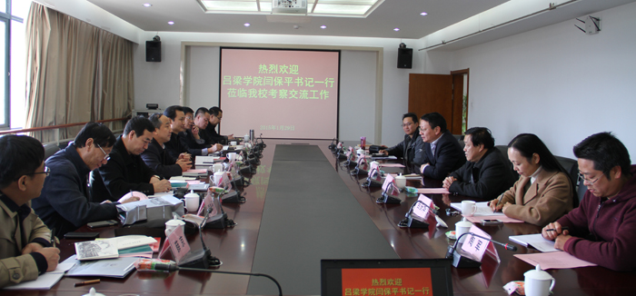 1月28日,吕梁学院党委书记闫保平一行9人到我校考察交流。重点考察我校转型发展的思路、做法和成效,党委领导下的校长负责制、党风廉政建设、两个责任落实情况以及工会、团委、老干等工作。交流座谈会在办公楼411会议室举行。
