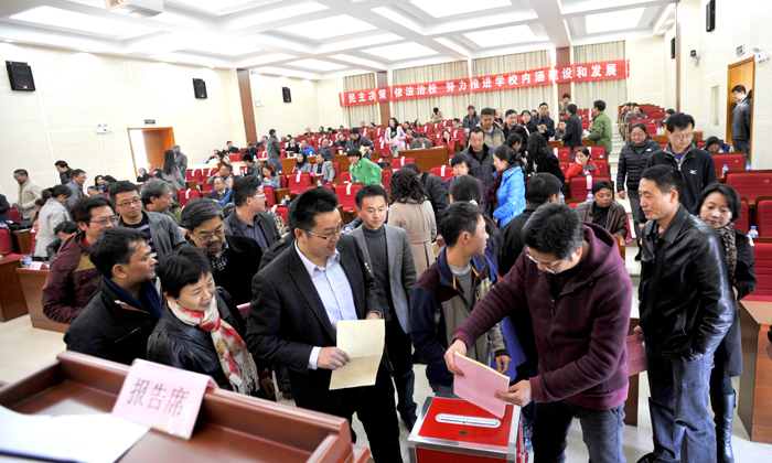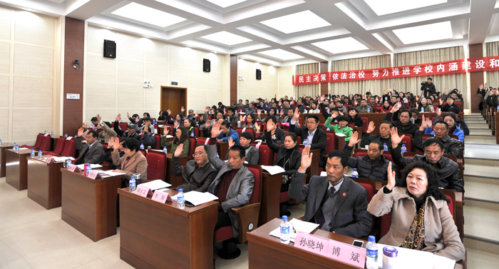 1月30日上午9点,党委副书记孙勇主持召开第二次全体会议。按照议程,会议表决通过了《yl23455永利官网工会第二届会员代表大会选举办法》,选举产生了yl23455永利官网工会第二届委员会委员、经费审查委员会委员,表决通过了yl23455永利官网第二届教代会执行委员会委员及教代会各专门工作委员会委员建议名单、yl23455永利官网第二届工会女工委员会委员建议名单,表决通过了学校行政工作报告决议,学校财务工作报告决议,yl23455永利官网第一届教代会、工会工作报告决议,第一届工会经费审查委员会工作报告决议,表决通过了《yl23455永利官网章程》和《yl23455永利官网教职工代表大会工作细则》。