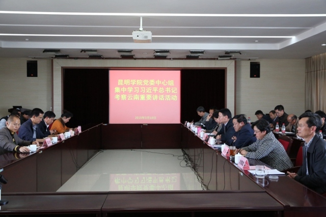3月10日下午,yl23455永利官网党委中心组在办公楼502会议室集中学习习近平总书记考察云南重要讲话精神。省委第六巡回督导组组长王智、副组长包超等领导出席,学校领导、党群机关各部门负责人、各党总支(直属党支部)书记参加了学习活动。