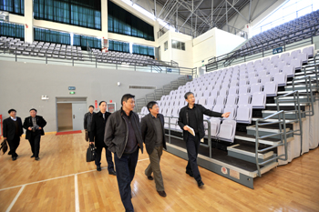 我校党委书记陈世波、校长蒋永文、副校长董建华热情接待了来宾,并在校景沙盘前向来宾介绍了校园建设发展情况。随后,董建华副校长陪同来宾参观了综合体育馆、青年中心、滇池流域生态文化博物馆、轨道交通实验室、农学院中庭温室。