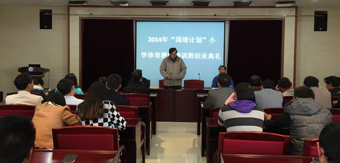 由我校体育学院承担的为期三个月的2014“国培计划”小学体育教师培训顺利结束,1月9日下午,在办公楼举行了结业典礼。体育学院党总支书记韦继康、院长赵平,“国培计划”培训班的班主任和50名学员参加会议。