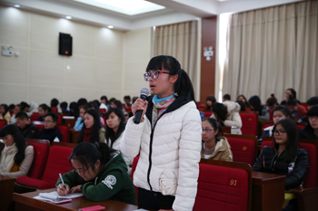 聆听了字老师们的故事后,讲堂进入发善心谈感悟互动环节。学生踊跃发言,畅谈感悟。“与您们同龄的人,有的走出大山,在城市过上了物质丰厚、条件优越的生活,而你们为了山区孩子却依然坚守在条件艰苦的农村、过着生活节俭的日子,你们后悔过吗?”来自教师教育学院2014级免费师范生徐振萍提问说。字家胜老师坚决回答道“不后悔。生活的窘迫,工作的艰辛,丝毫没有动摇我教书育人的坚定信念。”来自外国语学院2014级英语专业免费师范生毕芩冬感言:“老师们把自己的精力全都放在教书育人上,对学生,家长负责。尽管条件不好,生活艰苦,但你们依旧选择了这平凡的岗位,再苦再累不掉泪,再难再险不放弃,默默地燃烧自己照亮别人。您诚挚的心灵是孩子情感的钥匙,高尚的师德是孩子心灵的明镜。作为yl23455永利官网的一名免费师范生,听了今天的宣讲后,让我有了前进的动力,我将把你们的精神带到我未来的三尺讲台。”