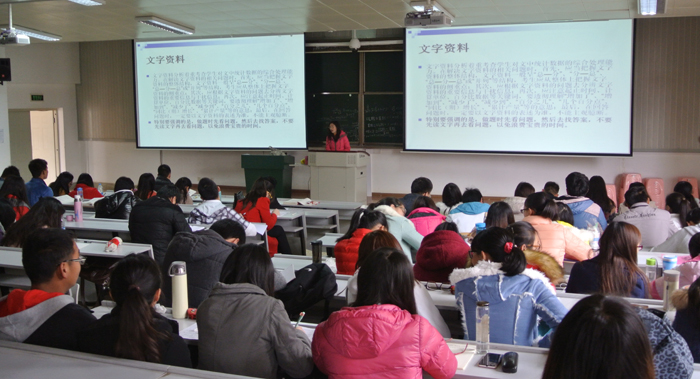 我校2015年公务员、村官、选调生考前辅导培训于01月12日上午在博识楼2003教室正式开班,培训为期一周,本次培训由招生就业处与社会管理学院共同举办,来自我校17个教学院系的200余名学生参加了开班培训。