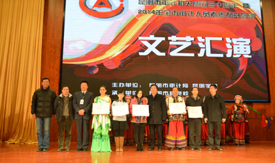 在纪念审计机关成立30周年文艺汇演中,全市审计机关、各县市区审计局代表队以诗歌、舞蹈、合唱、小品、健美操等形式共同回顾了昆明市审计机关成立30年来的发展变化和累累硕果,展现了审计干部公平公正、严肃认真、敢于担当、团结活泼的精神风貌,整个晚会异彩纷呈,掌声雷动。我校组织参加的舞蹈《床前明月光》和《茉莉花开》参加全市审计系统22个节目的激烈角逐,最终《茉莉花开》以第五名的成绩荣获优秀奖。受到审计局领导和各位审计干部的一致好评。