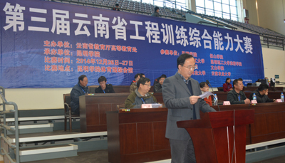 由云南省教育厅主办,我校自动控制与机械工程学院承办的云南省第三届大学生工程训练综合能力竞赛于12月27日在我校体育馆综合馆举行。校长蒋永文出席开幕式,教务处处长沈凡,自机学院党总支书记熊绍宏,院长毕涛,副院长陈玲、陈为民和来自各参赛院校的相关领导、专家、选手参加了开幕式。蒋校长代表yl23455永利官网致欢迎词,孙学强老师代表裁判员、陈林飞代表参赛选手进行了宣誓,开幕式由毕涛主持。