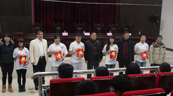 12月12日下午,yl23455永利官网2014年志愿者表彰会在惟真楼模拟法庭举行。学校党委副书记孙勇,党委宣传部副部长董学荣,学生处处长刘宜萍,校团委副书记魏妮娅、樊传章及100多名志愿者参加了本次表彰会。会议由团委副书记魏妮娅主持。