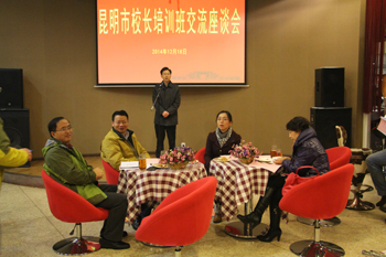 12月18日,昆明市教育局李瑞林副局长、师训处杨朝晖处长,昆明市第24期中学校长岗位培训班的全体学员及往期培训班学员代表共76人应邀来到我校参观交流,学校党委书记陈世波、校长蒋永文、副校长刘海发出席交流座谈会。
