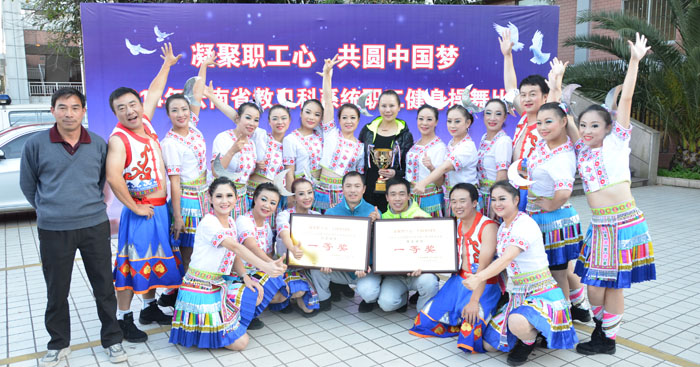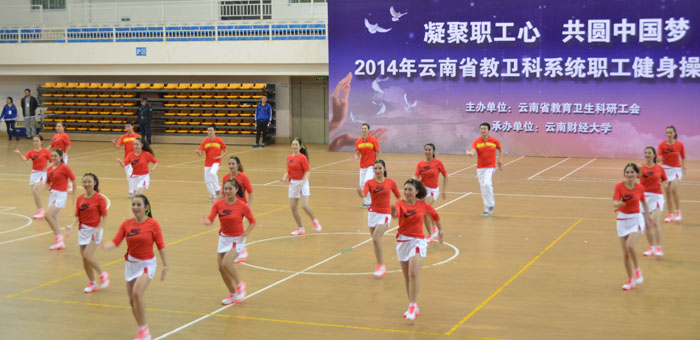 我校教职工代表队在刚刚结束的2014年云南省教育卫生科研系统职工健身操舞比赛中顽强拼搏,喜获佳绩,取得了两项一等奖和团体总分第三名。