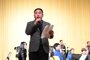 演出开始前,副校长郭华上台为此次晚会致辞。随后,云南民族乐团副团长杨瑜分别从吹管声部、弹拨声部、弦乐声部、打击乐声部向在场的师生介绍了台上的民族乐器。一曲欢快、喜庆的《北京喜讯到边寨》拉开了本次音乐会的序幕。整场晚会曲目丰富,不仅有民乐经典合奏《瑶族舞曲》的明亮柔美,唢呐独奏《正月十五闹雪灯》的热闹喜庆,琵琶独奏《十面埋伏》的荡气回肠,还有高亢洪亮的男声独唱《父亲》、《太阳升起的地方》。由歌手高洪章演唱的《打歌》、《四句》、《小瓜冇开花》把整场晚会推升至高潮,全场掌声雷动,呼声连连。最后,此次专场巡演以《云南美》大合唱而告终。丰富精彩的曲目、震撼心灵的旋律、演奏中与师生近距离互动,使演奏氛围一浪高过一浪,让在场观众感受到了民族乐器的独特魅力。