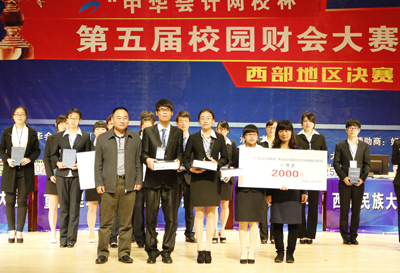 11月7日上午,由正保远程教育集团旗下中华会计网校主办,我校承办的“中华会计网校”全国第五届校园财会大赛西部地区决赛,在我校学生会堂举行。我校经济学院财务管理专业学生组队参赛,经过激烈角逐,代表队在7所大学参赛队中以总分第一的优异成绩赢得冠军,并将代表西部地区参加全国总决赛。学校副校长郭华、正保集团副总裁徐建宁和学校宣传部、教务处、计财处等部门负责人现场观看了比赛。