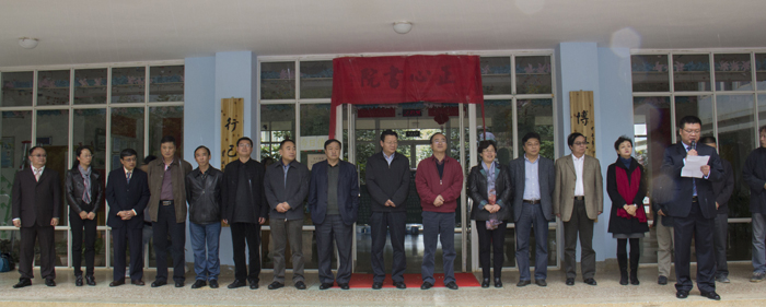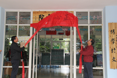 在热烈的掌声中,陈世波书记、蒋永文校长共同揭下匾额上的红布,“正心书院”四字显得遒劲而厚重。