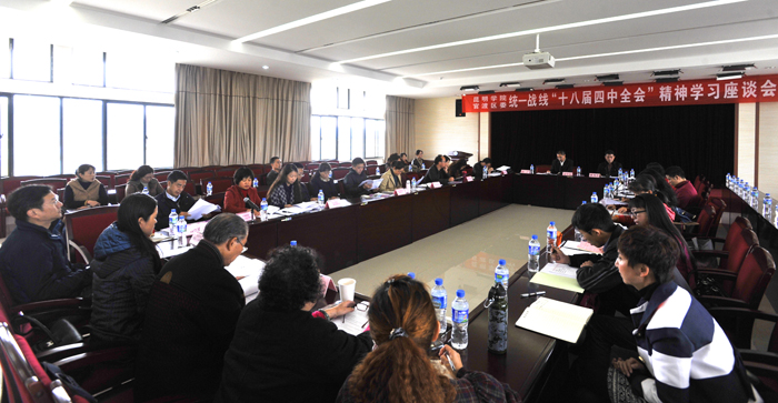 11月12日上午,yl23455永利官网和官渡区委统战以校地合作方式联合召开统一战线传达重要指示精神和学习十八届四中全会精神学习座谈会。此次会议的召开,是yl23455永利官网党委统战部和中共官渡区委统战部为了在广大统战成员当中及时传达习近平总书记对云南工作重要指示精神和省委常委扩大会议精神以及全省统一战线贯彻落实重要指示和会议精神的意见,认真学习贯彻党的十八届四中全会精神,积极搭建民主党派学习研讨交流的平台,让各民主党派更好地参政议政、建言献策,扎实推进学校和官渡区统一战线工作。