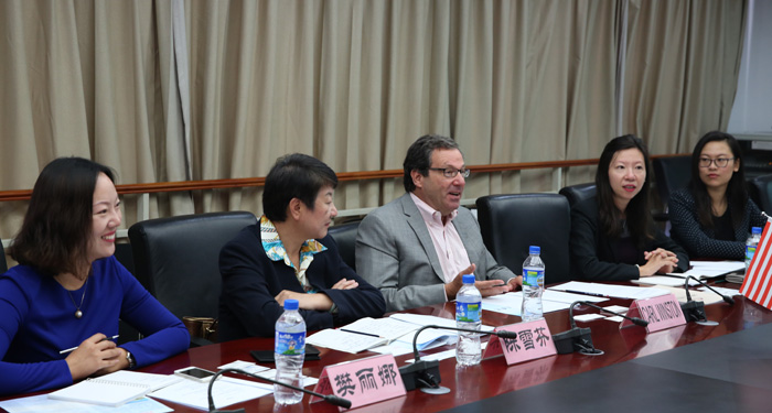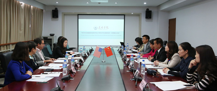 李翔副校长、国际交流合作处副处长陈静、旅游学院党总支书记张士芬、副院长田芙蓉、副书记杨光明等相关人员接待了代表团成员。李副校长代表学校欢迎代表团来访,并向来宾介绍了yl23455永利官网办学情况;田芙蓉介绍了旅游学院办学特色;来宾代表介绍了万豪国际集团及圣地亚哥州立大学情况。