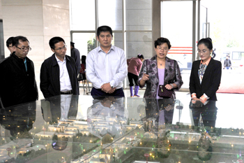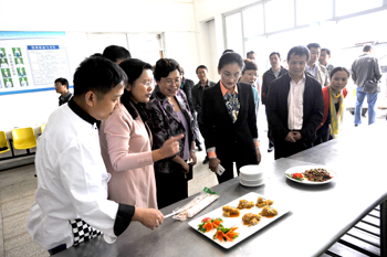 我校党委书记陈世波、校长蒋永文、副校长熊晶热情接待了富民县领导班子一行。熊副校长通过校园模型沙盘,向来宾介绍了学校的建设发展情况。并陪同来宾参观了综合体育馆、烹饪实验室、滇池流域生态文化博物馆、轨道交通实验室、化学系、农学院、酒水实验室。
