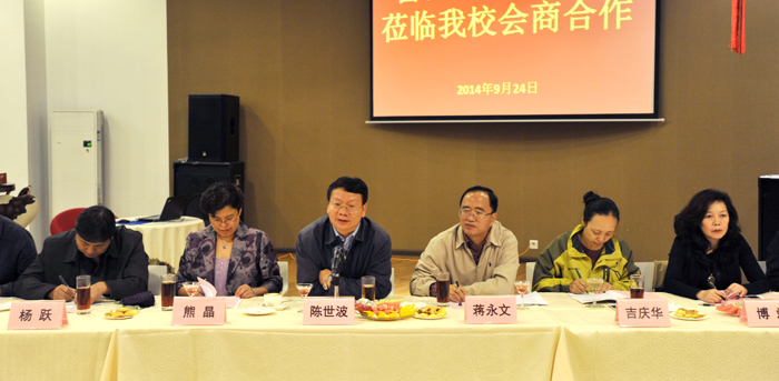 9月24日下午,富民县委书记李江,县人大常委会主任杨超,县长周开龙,县政协副主席熊军,县委常委、县纪委书记余利鸿,县委常委、县委宣传部部长李媛珏,县人民政府副县长陈垠宏、徐玫娟等领导率县委办、县政府办、县委农办、县农业局、县林业局、县环保局、县文体广电旅游局、县规划局、县人才办、富民县永定街道办事处等部门领导,就双边合作事宜到我校考察商谈。