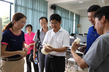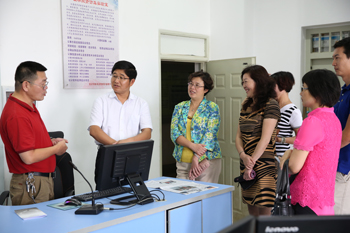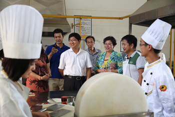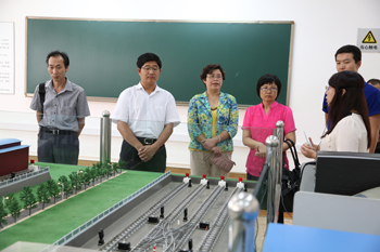 交流座谈前,陆平书记一行在熊晶副校长的陪同下,认真地参观了校园建设和专业实验室。来到校园建设规划沙盘前,熊晶副校长介绍了校园建筑建设布局、设计理念、校园水系生态建设和各建筑设施功能等情况。在相关实验室负责人的介绍下,陆书记一行还参观了证券投资仿真实验室、国际贸易综合实验室、财务ERP综合模拟实验室、金蝶ERP工商管理实验室、烹饪与营养实验室、旅游酒水实验室、城市轨道交通运营技术实验室、3D仿真打印实验室、污水净化系统、人体生命科学馆、ICU中心、特色植物科技种植展示温室等专业教学设施和场馆。每到一处,陆书记均围绕如何利用、发挥高校优势,促进当地经济社会发展等问题对设备的功能、效益等情况作了详细咨询和了解。