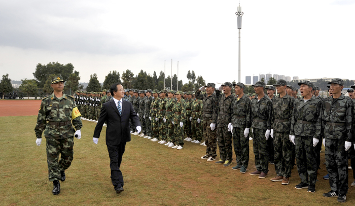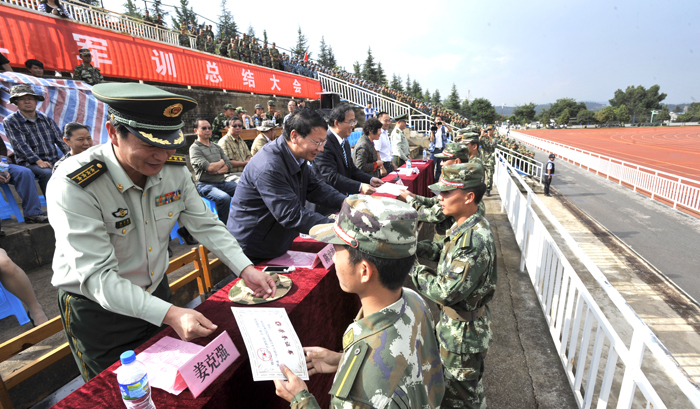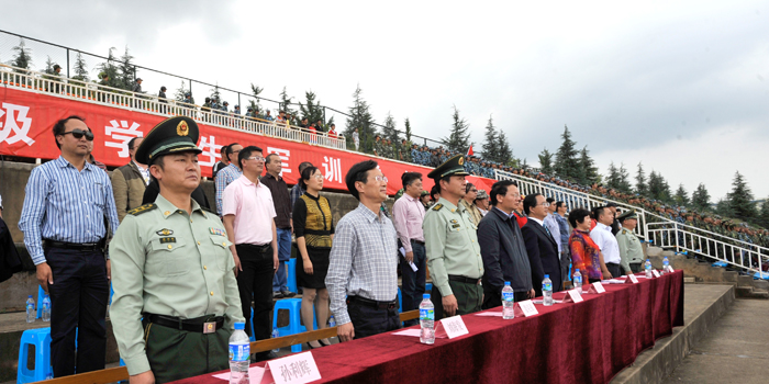 9月19日下午,我校2014级学生军训总结大会在田径运动场隆重举行。学校党委书记陈世波,校长蒋永文,党委副书记、纪委书记李媛芬,副校长李翔、郭华、刘海发,武警边防部队士官学校副校长姜克强、继续教育处处长孙利辉、军需卫生系主任李海昌,我校国防教育委员会成员单位领导、各院系党总支副书记、带队辅导员,2014级4790余名参训学生参加了总结大会。大会由副校长李翔主持。