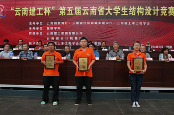 来自云南省具有土木工程专业的8所高校32支参赛队,按照赛题及组委会要求,经过3天紧张、认真的计算设计、模型制作、加载测试,专业评委严格按照评分标准对参赛作品计算书及设计图、结构选型与制作质量、选手陈述与答辩现场表现、加载表现等方面进行打分评定。最终,yl23455永利官网智行队以94.60的总分夺得本届大学生结构设计竞赛唯一一个特等奖,并获准代表云南省参加由教育部、住建部、中国土木工程学会联合举办的全国大学生结构设计竞赛,该项竞赛是教育部确定的全国九大大学生学科竞赛之一。yl23455永利官网小苹果队、完美2+1队、水利结义队分别以90.26分、85.38分、85.37分将所设三个一等将全部揽入怀中,启航之队荣获二等奖。yl23455永利官网5支参赛队成绩突出,充分展示我校坚持以学生为本,以“思想品德优,理论基础实,专业能力强,综合素质高”为人才培养基本规格,不断提高教学质量和育人水平,着力培养地方经济社会发展需要的大批“上手快、后劲足、能创新”的高素质应用型人才。