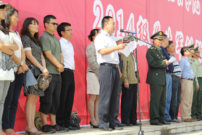 武警边防部队士官学校继续教育处处长孙利辉宣布了2014级学生军训计划,2014级学生军训团团长龙明刚宣读了学生军训纪律,来自我校社会管理学院2014级思想政治教育专业赵文涛同学和来自军训团三营的王丁副营长代表参训学生及承训教官在大会上作了发言。