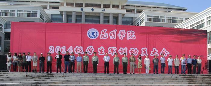 9月8日上午,我校在聂耳广场举行2014级学生军训动员大会。武警边防部队士官学校训练部李荣部长及相关职能部门的领导,经开区消防大队张海峰中校,我校郭华副校长及相关职能部门的领导、各院系领导、带队辅导员、全体承训官兵和2014级4797名参训同学参加了动员大会。